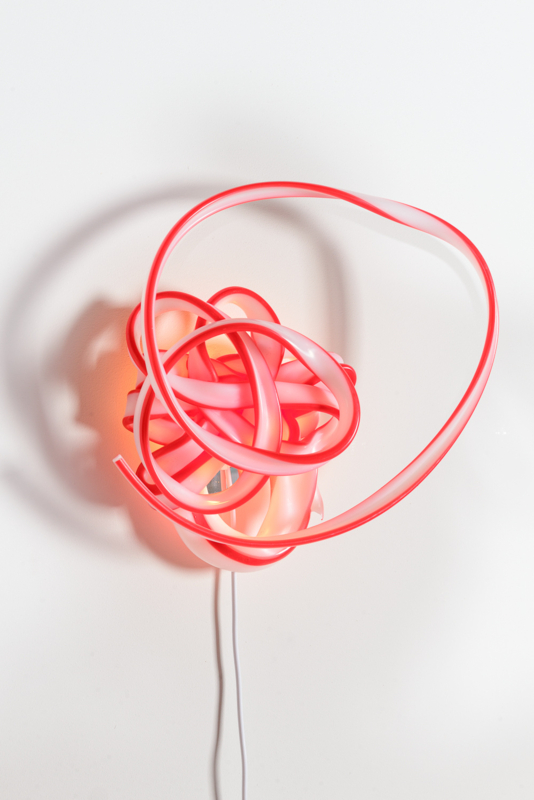 - materials: Polyethylene factory overproduction, Mirror plexiglass, LED in an aluminum housing.