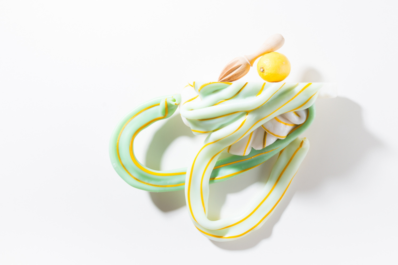 Irregular lumps of factory overproduction plastics, translated into unique and striking circular accessories for in- and outdoor