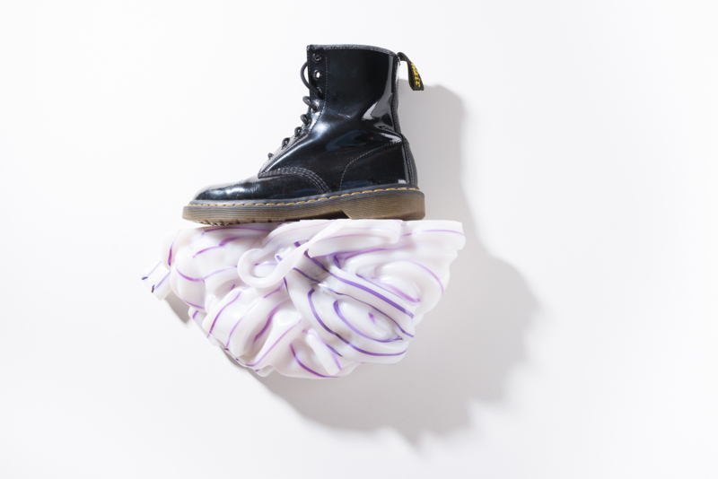 Irregular lumps of factory overproduction plastics, translated into unique and striking circular accessories for in- and outdoor