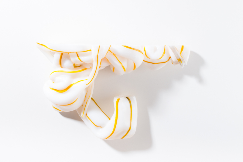 We were fascinated by the unique shapes and beautiful bright colours of neglected lumps, found at a plastic processing factory. Where we select the most striking shapes and colours, while at the same time observe as a sculptor what we can make out of it. In the process of transformation, we cut the pieces by saw or mill it with CNC. Hence it is such a surprise to find out what is hidden inside, creating an exiting moment when the marbled pattern reveals itself when the two halves split.