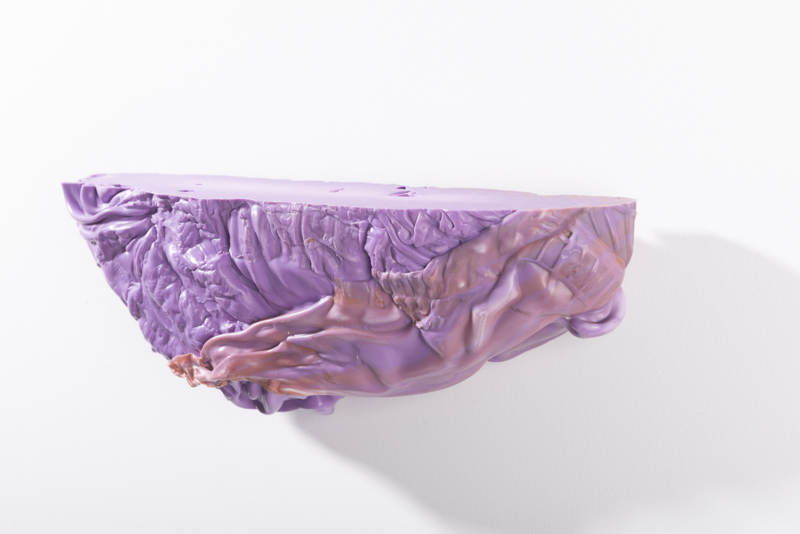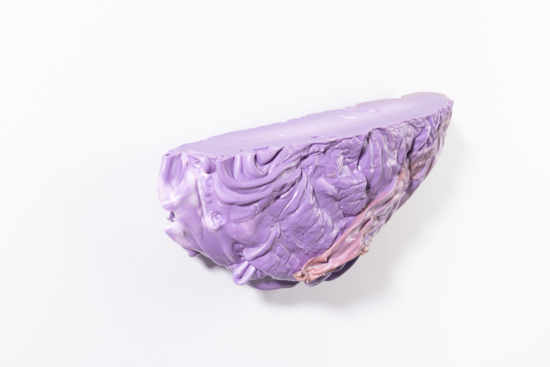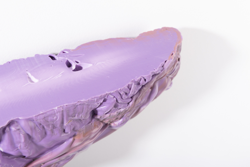 We were fascinated by the unique shapes and beautiful bright colours of neglected lumps, found at a plastic processing factory. Where we select the most striking shapes and colours, while at the same time observe as a sculptor what we can make out of it. In the process of transformation, we cut the pieces by saw or mill it with CNC. Hence it is such a surprise to find out what is hidden inside, creating an exiting moment when the marbled pattern reveals itself when the two halves split.