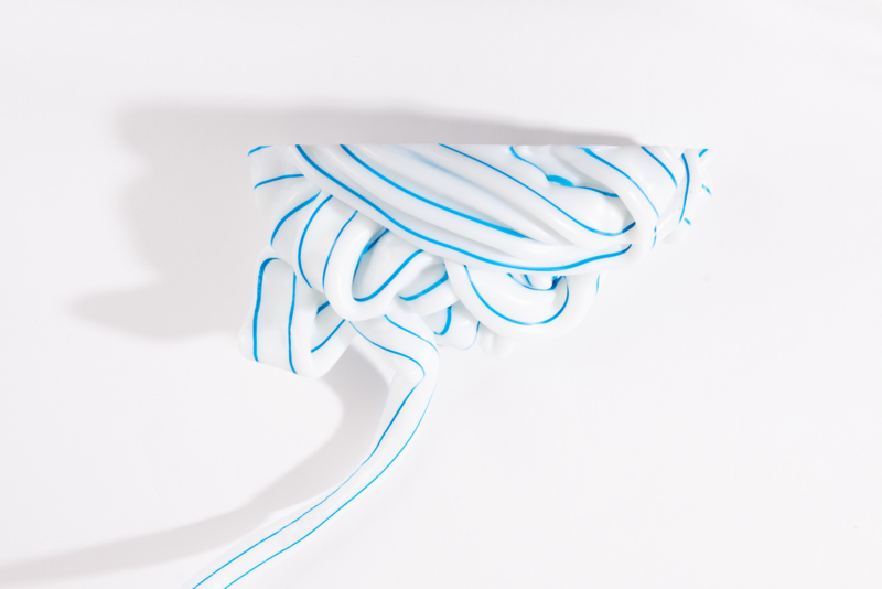 Irregular lumps of factory overproduction plastics, translated into unique and striking circular accessories for in- and outdoor.
