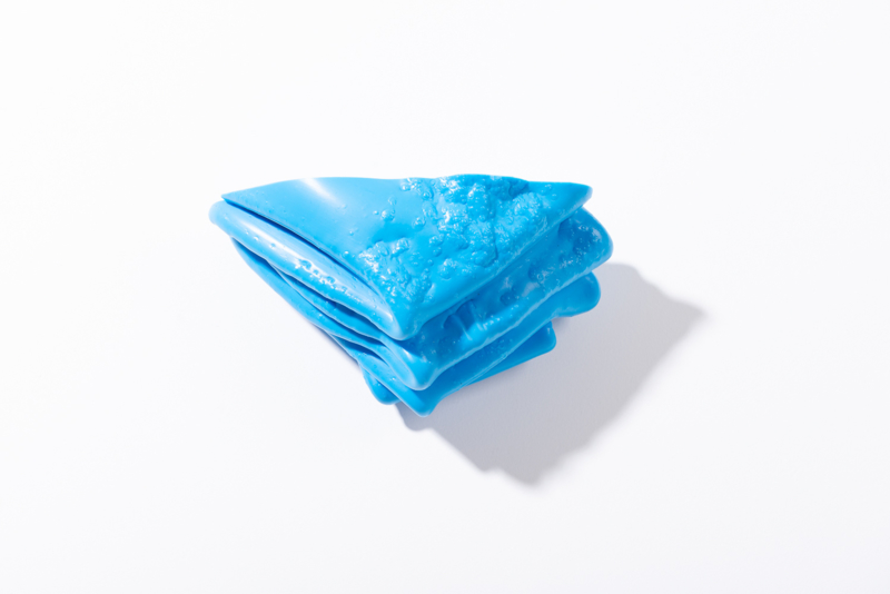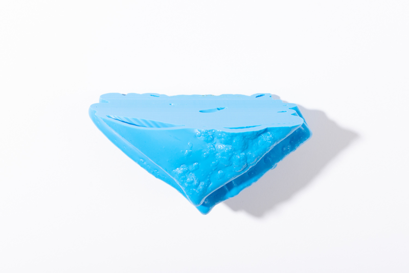We were fascinated by the unique shapes and beautiful bright colours of neglected lumps, found at a plastic processing factory. Where we select the most striking shapes and colours, while at the same time observe as a sculptor what we can make out of it. In the process of transformation, we cut the pieces by saw or mill it with CNC. Hence it is such a surprise to find out what is hidden inside, creating an exiting moment when the marbled pattern reveals itself when the two halves split.