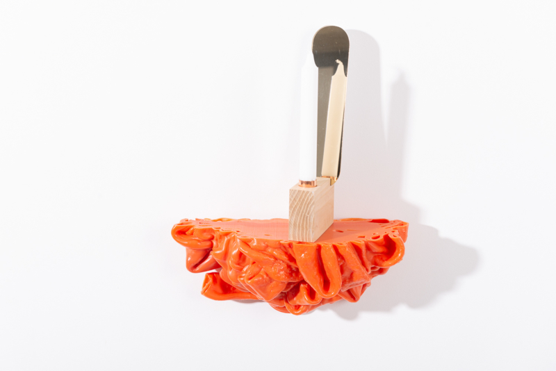 We were fascinated by the unique shapes and beautiful bright colours of neglected lumps, found at a plastic processing factory. Where we select the most striking shapes and colours, while at the same time observe as a sculptor what we can make out of it. In the process of transformation, we cut the pieces by saw or mill it with CNC. Hence it is such a surprise to find out what is hidden inside, creating an exiting moment when the marbled pattern reveals itself when the two halves split.