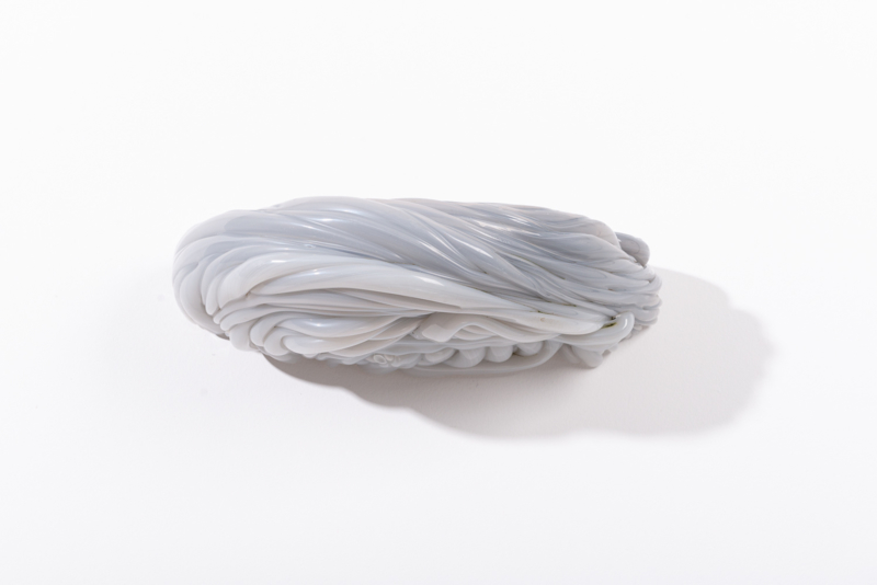 We were fascinated by the unique shapes and beautiful bright colours of neglected lumps, found at a plastic processing factory. Where we select the most striking shapes and colours, while at the same time observe as a sculptor what we can make out of it. In the process of transformation, we cut the pieces by saw or mill it with CNC. Hence it is such a surprise to find out what is hidden inside, creating an exiting moment when the marbled pattern reveals itself when the two halves split.
