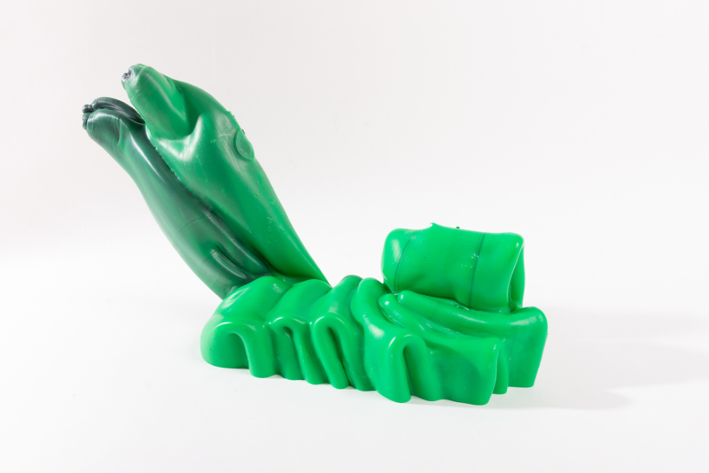 We were fascinated by the unique shapes and beautiful bright colours of neglected lumps, found at a plastic processing factory. Where we select the most striking shapes and colours, while at the same time observe as a sculptor what we can make out of it. In the process of transformation, we cut the pieces by saw or mill it with CNC. Hence it is such a surprise to find out what is hidden inside, creating an exiting moment when the marbled pattern reveals itself when the two halves split.
