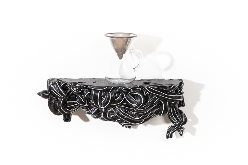 Irregular lumps of factory overproduction plastics, translated into unique and striking circular accessories for in- and outdoor.