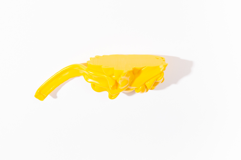 We were fascinated by the unique shapes and beautiful bright colours of neglected lumps, found at a plastic processing factory. Where we select the most striking shapes and colours, while at the same time observe as a sculptor what we can make out of it. In the process of transformation, we cut the pieces by saw or mill it with CNC. Hence it is such a surprise to find out what is hidden inside, creating an exiting moment when the marbled pattern reveals itself when the two halves split.