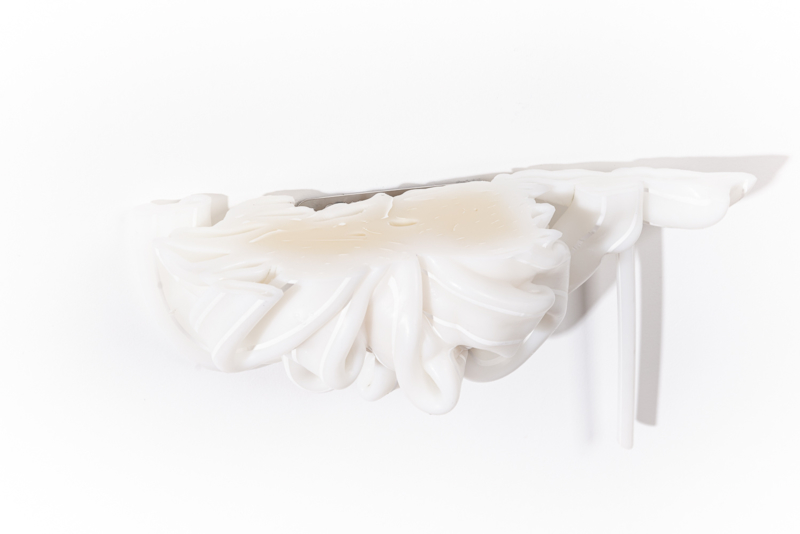 We were fascinated by the unique shapes and beautiful bright colours of neglected lumps, found at a plastic processing factory. Where we select the most striking shapes and colours, while at the same time observe as a sculptor what we can make out of it. In the process of transformation, we cut the pieces by saw or mill it with CNC. Hence it is such a surprise to find out what is hidden inside, creating an exiting moment when the marbled pattern reveals itself when the two halves split.