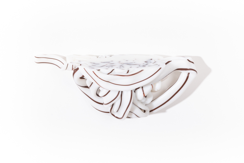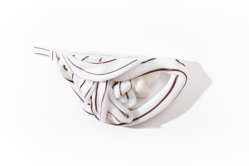 We were fascinated by the unique shapes and beautiful bright colours of neglected lumps, found at a plastic processing factory. Where we select the most striking shapes and colours, while at the same time observe as a sculptor what we can make out of it. In the process of transformation, we cut the pieces by saw or mill it with CNC. Hence it is such a surprise to find out what is hidden inside, creating an exiting moment when the marbled pattern reveals itself when the two halves split.