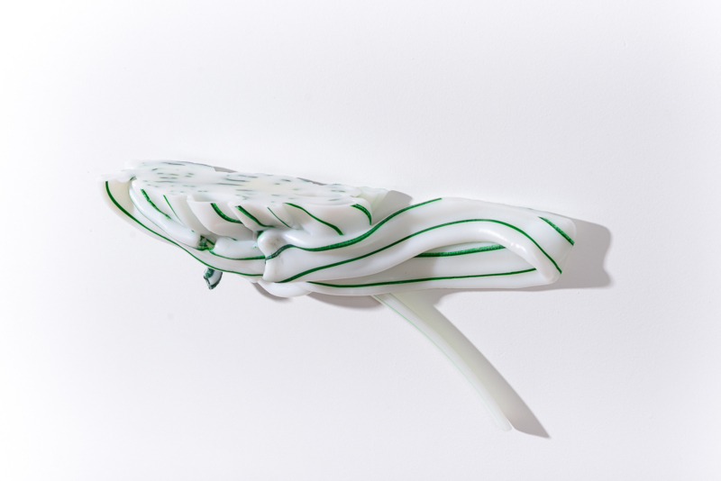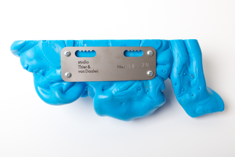 We were fascinated by the unique shapes and beautiful bright colours of neglected lumps, found at a plastic processing factory. Where we select the most striking shapes and colours, while at the same time observe as a sculptor what we can make out of it. In the process of transformation, we cut the pieces by saw or mill it with CNC. Hence it is such a surprise to find out what is hidden inside, creating an exiting moment when the marbled pattern reveals itself when the two halves split.