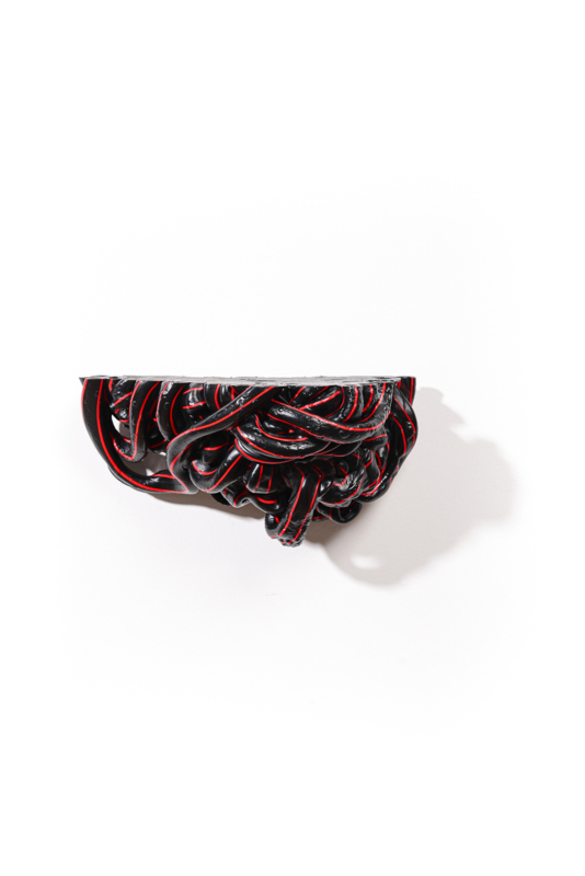 Irregular lumps of factory overproduction plastics, translated into unique and striking circular accessories for in- and outdoor.