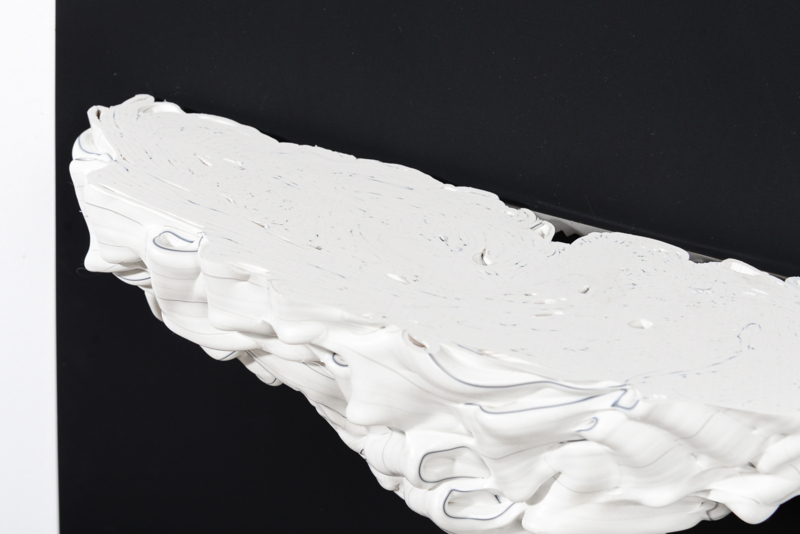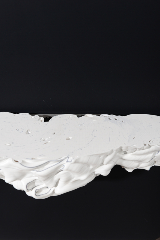 We were fascinated by the unique shapes and beautiful bright colours of neglected lumps, found at a plastic processing factory. Where we select the most striking shapes and colours, while at the same time observe as a sculptor what we can make out of it. In the process of transformation, we cut the pieces by saw or mill it with CNC. Hence it is such a surprise to find out what is hidden inside, creating an exiting moment when the marbled pattern reveals itself when the two halves split.