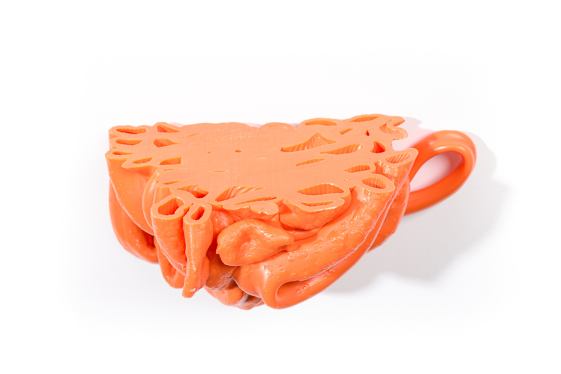 We were fascinated by the unique shapes and beautiful bright colours of neglected lumps, found at a plastic processing factory. Where we select the most striking shapes and colours, while at the same time observe as a sculptor what we can make out of it. In the process of transformation, we cut the pieces by saw or mill it with CNC. Hence it is such a surprise to find out what is hidden inside, creating an exiting moment when the marbled pattern reveals itself when the two halves split.