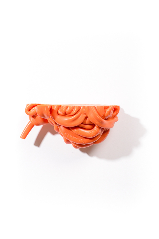 We were fascinated by the unique shapes and beautiful bright colours of neglected lumps, found at a plastic processing factory. Where we select the most striking shapes and colours, while at the same time observe as a sculptor what we can make out of it. In the process of transformation, we cut the pieces by saw or mill it with CNC. Hence it is such a surprise to find out what is hidden inside, creating an exiting moment when the marbled pattern reveals itself when the two halves split.