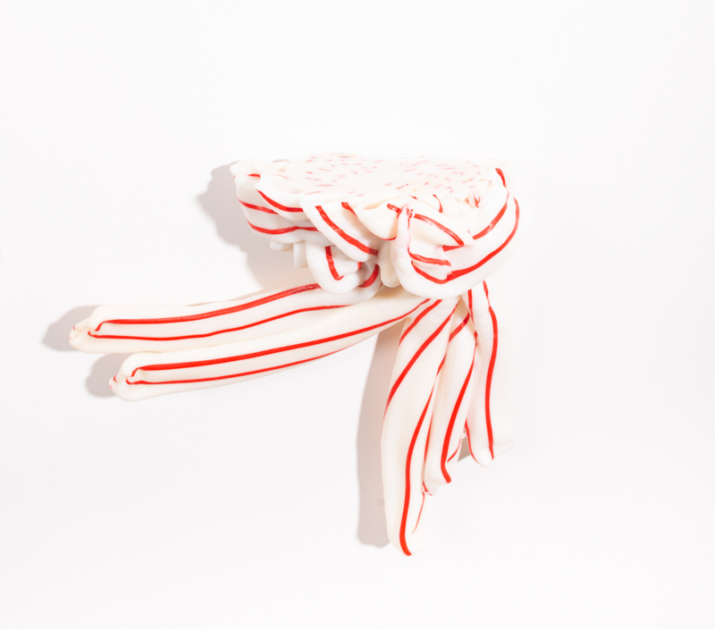 Irregular lumps of factory overproduction plastics, translated into unique and striking circular accessories for in- and outdoor.