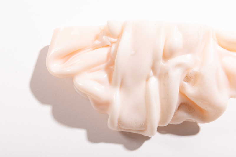 We were fascinated by the unique shapes and beautiful bright colours of neglected lumps, found at a plastic processing factory. Where we select the most striking shapes and colours, while at the same time observe as a sculptor what we can make out of it. In the process of transformation, we cut the pieces by saw or mill it with CNC. Hence it is such a surprise to find out what is hidden inside, creating an exiting moment when the marbled pattern reveals itself when the two halves split.