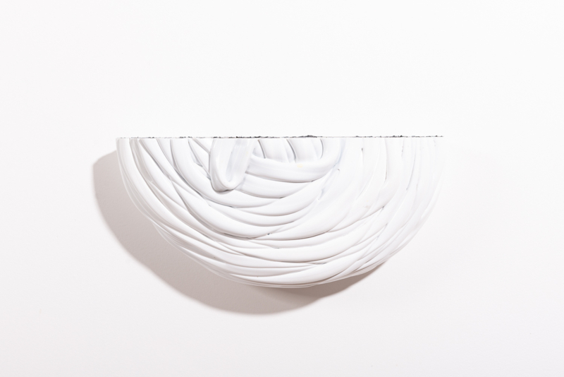 Irregular lumps of factory overproduction plastics, translated into unique and striking circular accessories for in- and outdoor.