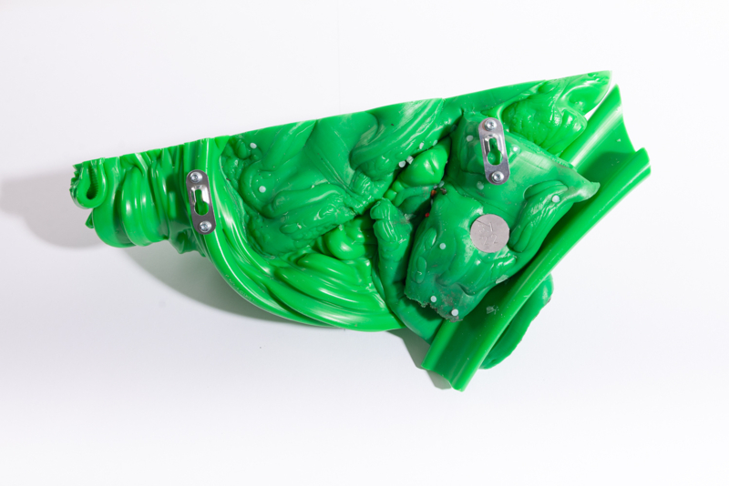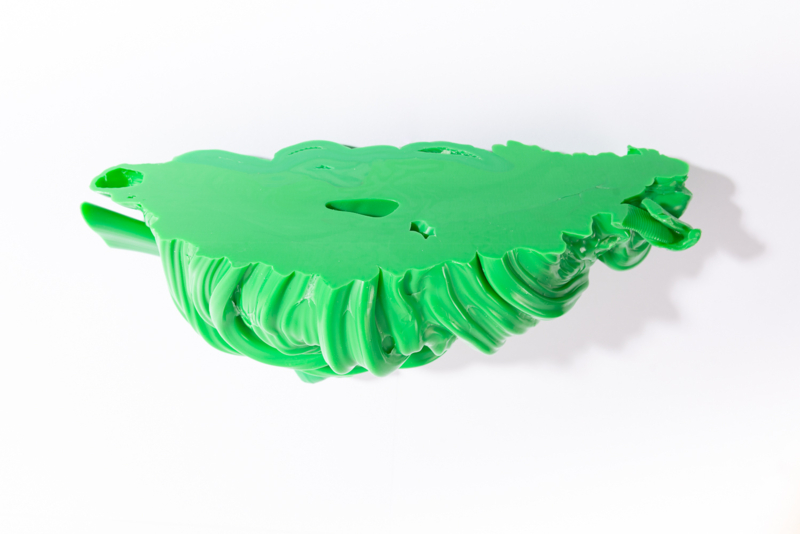 We were fascinated by the unique shapes and beautiful bright colours of neglected lumps, found at a plastic processing factory. Where we select the most striking shapes and colours, while at the same time observe as a sculptor what we can make out of it. In the process of transformation, we cut the pieces by saw or mill it with CNC. Hence it is such a surprise to find out what is hidden inside, creating an exiting moment when the marbled pattern reveals itself when the two halves split.