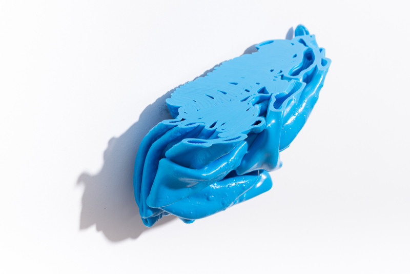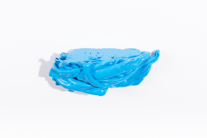 We were fascinated by the unique shapes and beautiful bright colours of neglected lumps, found at a plastic processing factory. Where we select the most striking shapes and colours, while at the same time observe as a sculptor what we can make out of it. In the process of transformation, we cut the pieces by saw or mill it with CNC. Hence it is such a surprise to find out what is hidden inside, creating an exiting moment when the marbled pattern reveals itself when the two halves split.