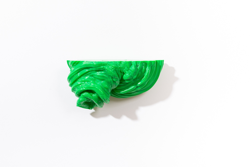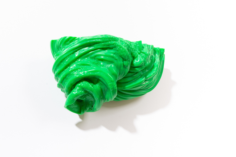 We were fascinated by the unique shapes and beautiful bright colours of neglected lumps, found at a plastic processing factory. Where we select the most striking shapes and colours, while at the same time observe as a sculptor what we can make out of it. In the process of transformation, we cut the pieces by saw or mill it with CNC. Hence it is such a surprise to find out what is hidden inside, creating an exiting moment when the marbled pattern reveals itself when the two halves split.