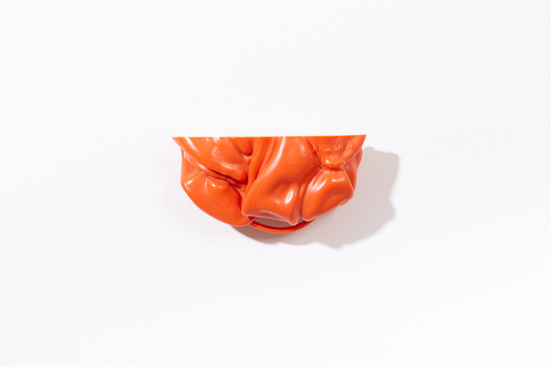 We were fascinated by the unique shapes and beautiful bright colours of neglected lumps, found at a plastic processing factory. Where we select the most striking shapes and colours, while at the same time observe as a sculptor what we can make out of it. In the process of transformation, we cut the pieces by saw or mill it with CNC. Hence it is such a surprise to find out what is hidden inside, creating an exiting moment when the marbled pattern reveals itself when the two halves split.