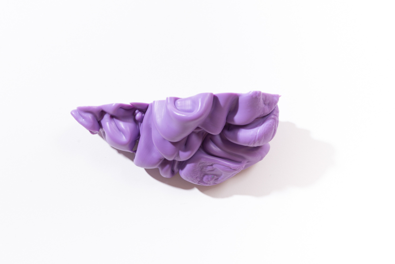 We were fascinated by the unique shapes and beautiful bright colours of neglected lumps, found at a plastic processing factory. Where we select the most striking shapes and colours, while at the same time observe as a sculptor what we can make out of it. In the process of transformation, we cut the pieces by saw or mill it with CNC. Hence it is such a surprise to find out what is hidden inside, creating an exiting moment when the marbled pattern reveals itself when the two halves split.