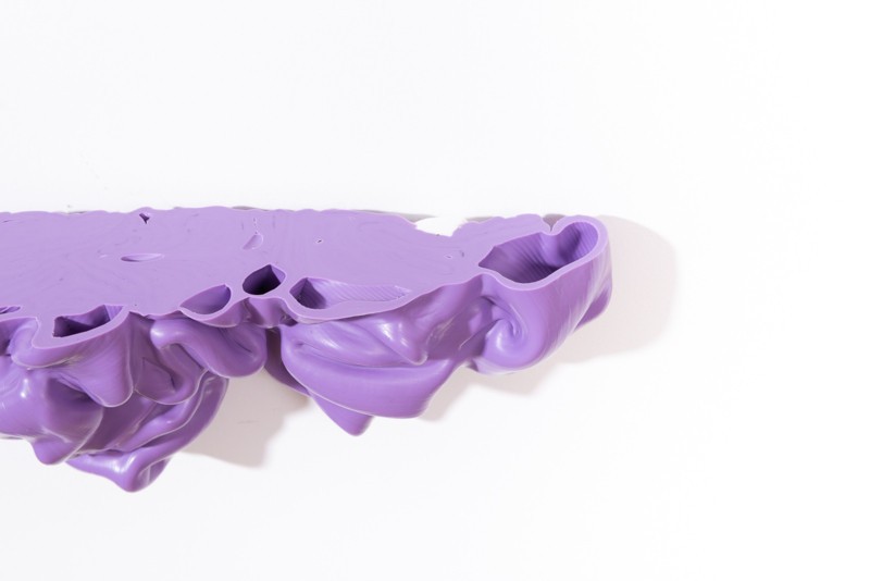 We were fascinated by the unique shapes and beautiful bright colours of neglected lumps, found at a plastic processing factory. Where we select the most striking shapes and colours, while at the same time observe as a sculptor what we can make out of it. In the process of transformation, we cut the pieces by saw or mill it with CNC. Hence it is such a surprise to find out what is hidden inside, creating an exiting moment when the marbled pattern reveals itself when the two halves split.