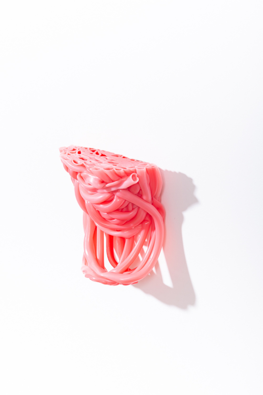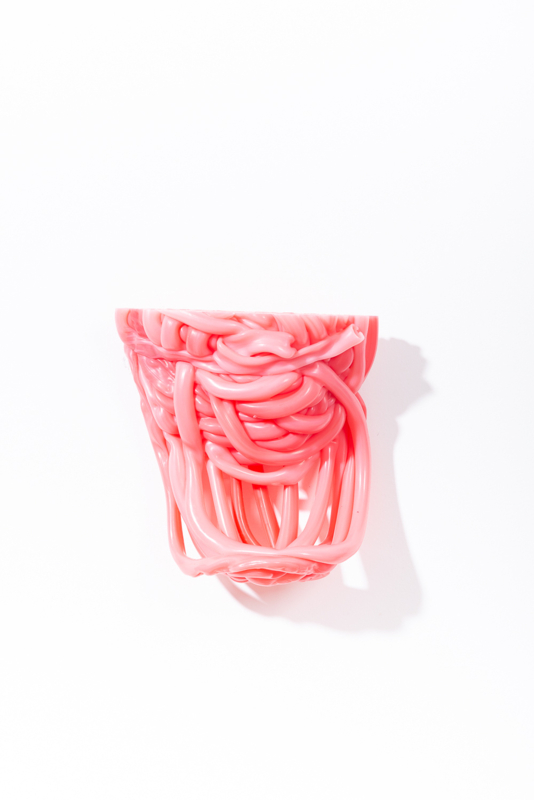 Irregular lumps of factory overproduction plastics, translated into unique and striking circular accessories for in- and outdoor.