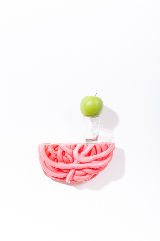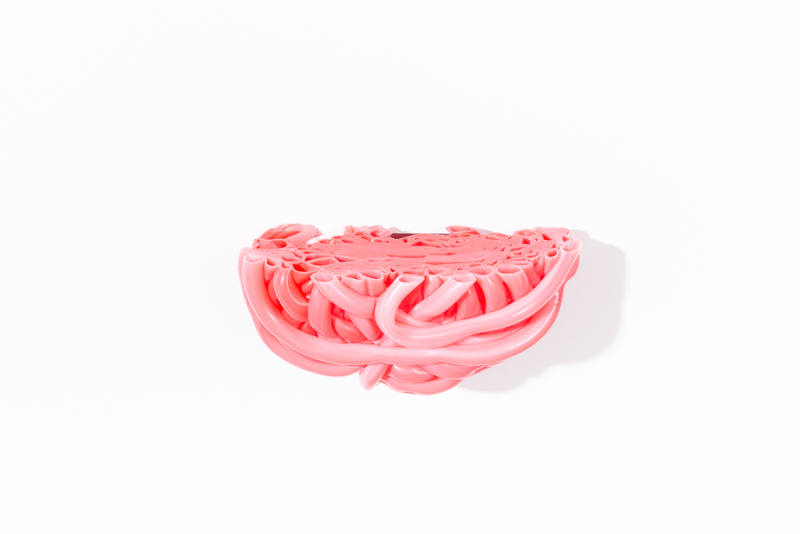 Irregular lumps of factory overproduction plastics, translated into unique and striking circular accessories for in- and outdoor.