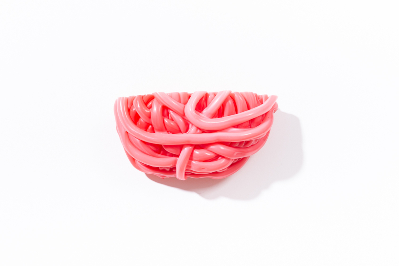We were fascinated by the unique shapes and beautiful bright colours of neglected lumps, found at a plastic processing factory. Where we select the most striking shapes and colours, while at the same time observe as a sculptor what we can make out of it. In the process of transformation, we cut the pieces by saw or mill it with CNC. Hence it is such a surprise to find out what is hidden inside, creating an exiting moment when the marbled pattern reveals itself when the two halves split.
