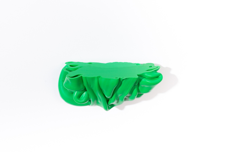 We were fascinated by the unique shapes and beautiful bright colours of neglected lumps, found at a plastic processing factory. Where we select the most striking shapes and colours, while at the same time observe as a sculptor what we can make out of it. In the process of transformation, we cut the pieces by saw or mill it with CNC. Hence it is such a surprise to find out what is hidden inside, creating an exiting moment when the marbled pattern reveals itself when the two halves split.