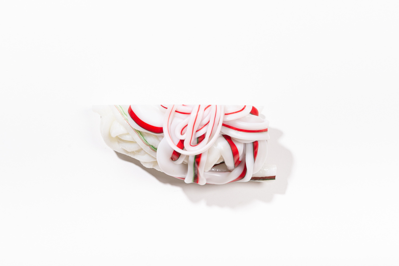 We were fascinated by the unique shapes and beautiful bright colours of neglected lumps, found at a plastic processing factory. Where we select the most striking shapes and colours, while at the same time observe as a sculptor what we can make out of it. In the process of transformation, we cut the pieces by saw or mill it with CNC. Hence it is such a surprise to find out what is hidden inside, creating an exiting moment when the marbled pattern reveals itself when the two halves split.