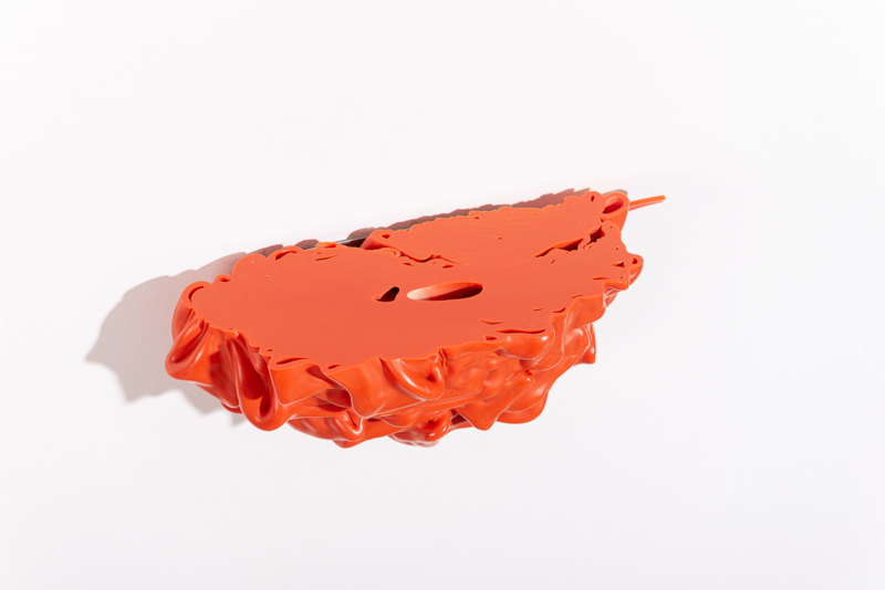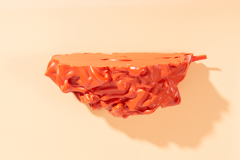 We were fascinated by the unique shapes and beautiful bright colours of neglected lumps, found at a plastic processing factory. Where we select the most striking shapes and colours, while at the same time observe as a sculptor what we can make out of it. In the process of transformation, we cut the pieces by saw or mill it with CNC. Hence it is such a surprise to find out what is hidden inside, creating an exiting moment when the marbled pattern reveals itself when the two halves split.