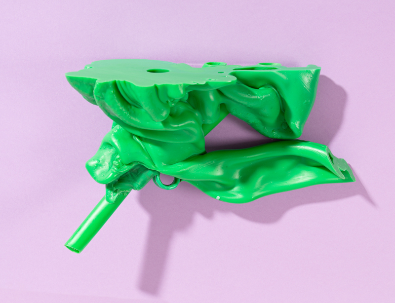 Irregular lumps of factory overproduction plastics, translated into unique and striking circular accessories for in- and outdoor.