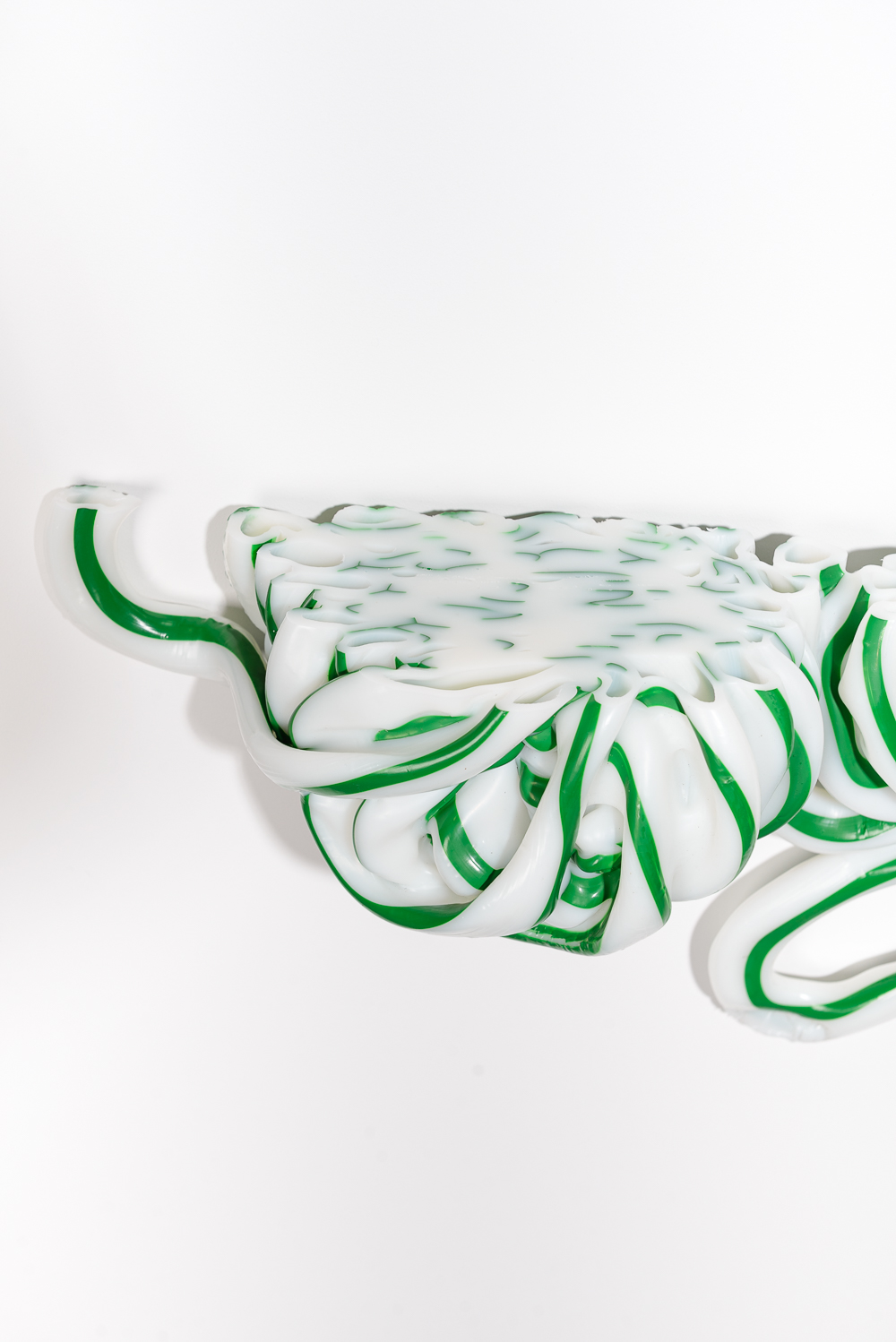 Irregular lumps of factory overproduction plastics, translated into unique and striking circular accessories for in- and outdoor.